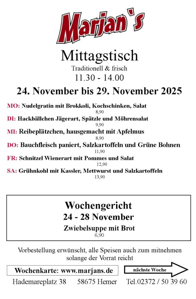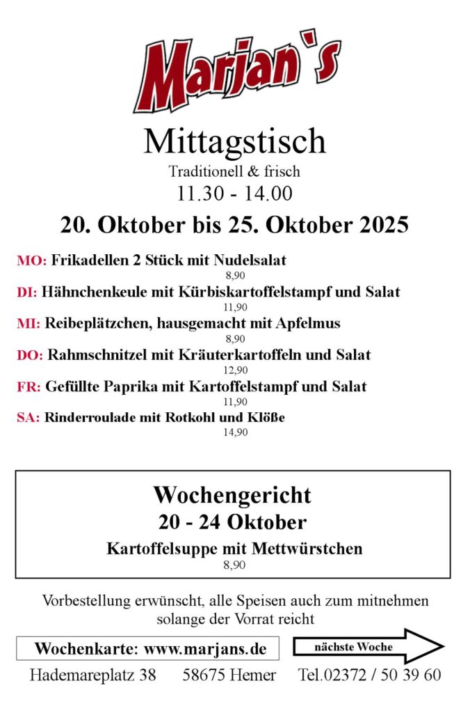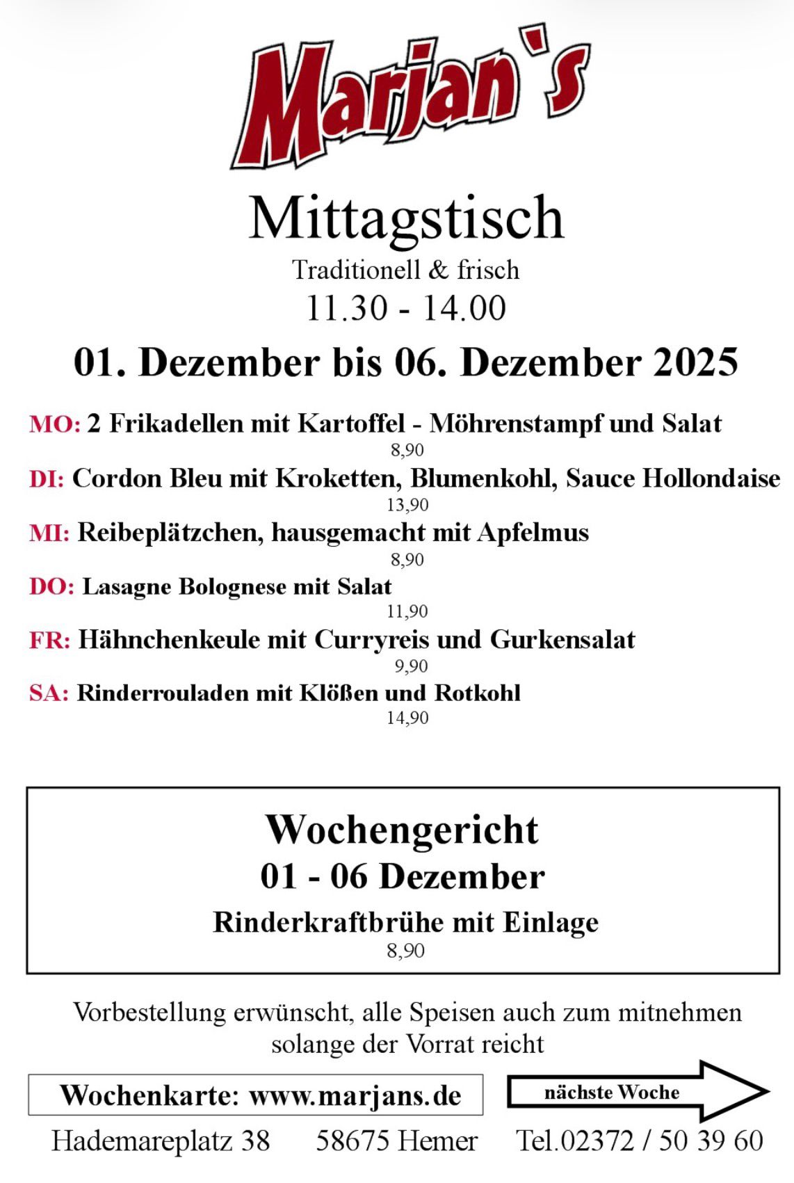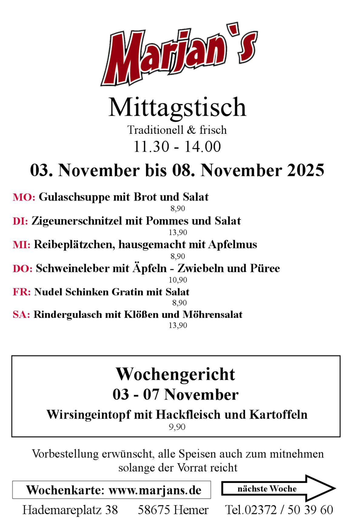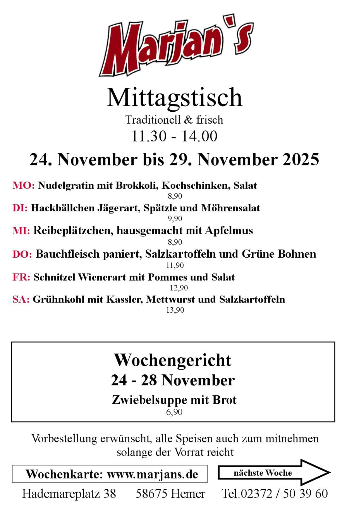 Unser Mittagstisch – Regional & Frisch – Montag bis Samstag von 11:30 bis 14:00 Uhr