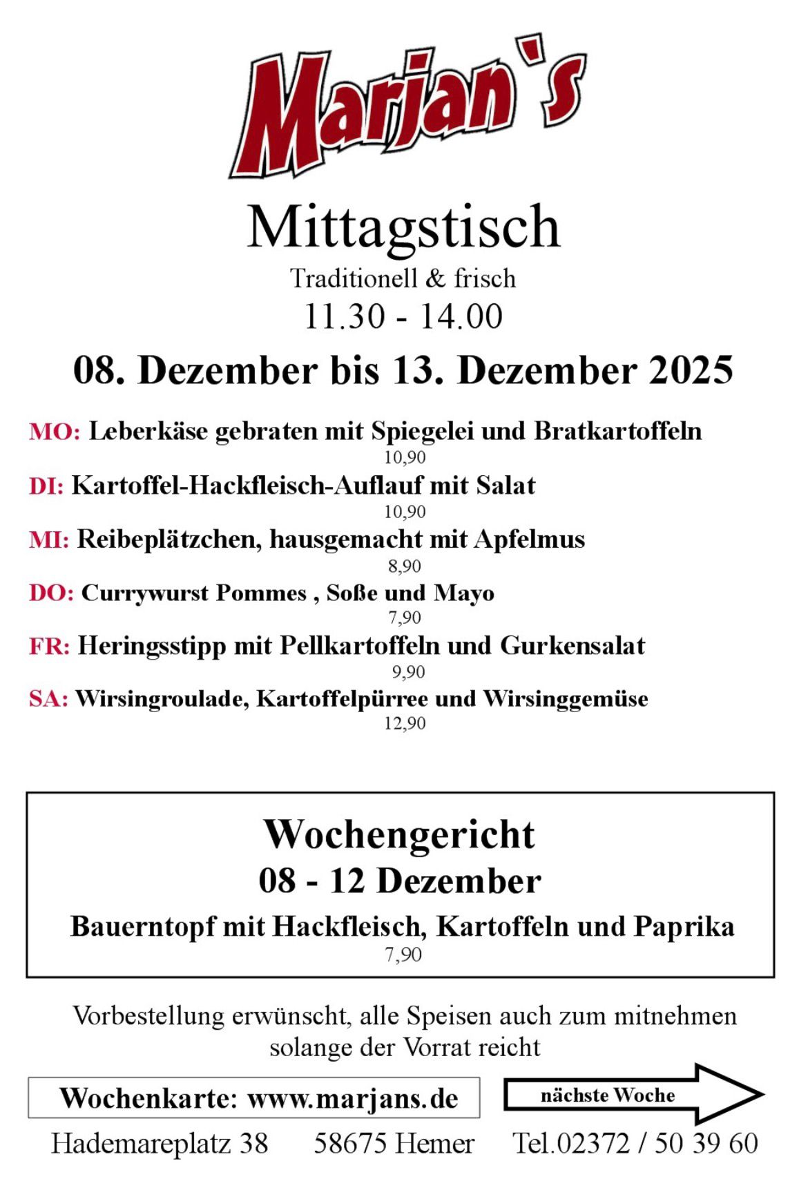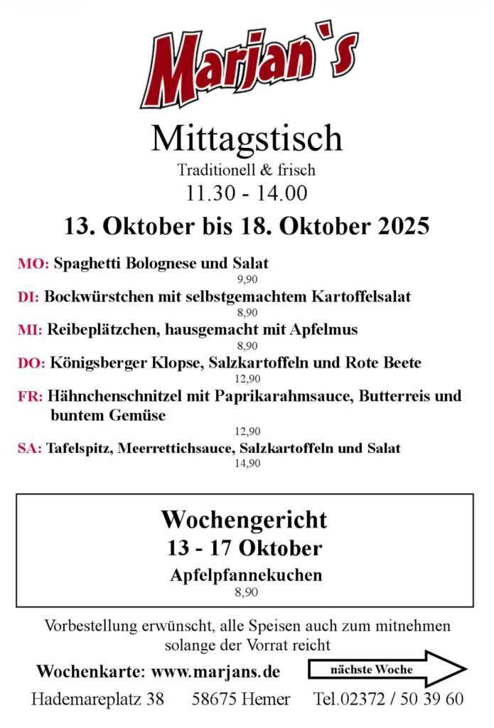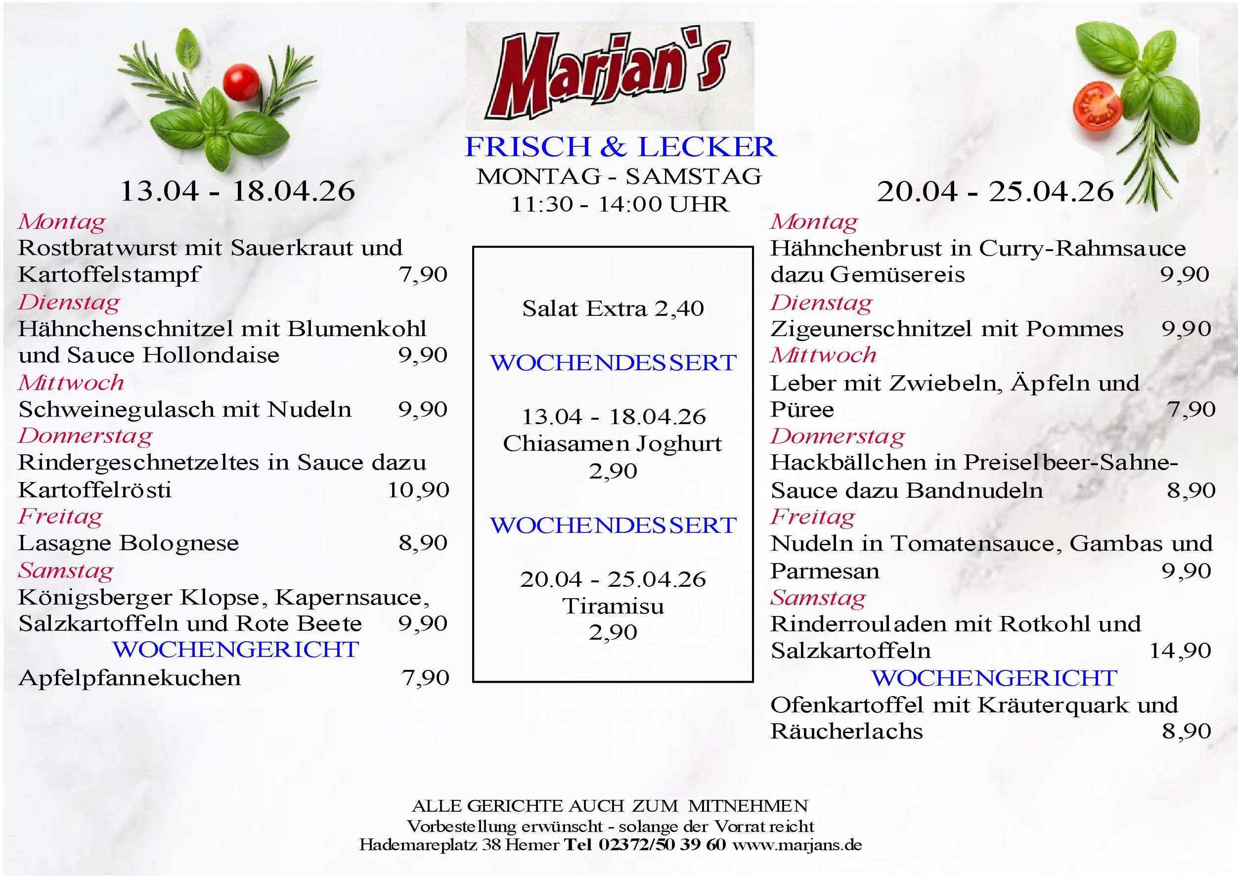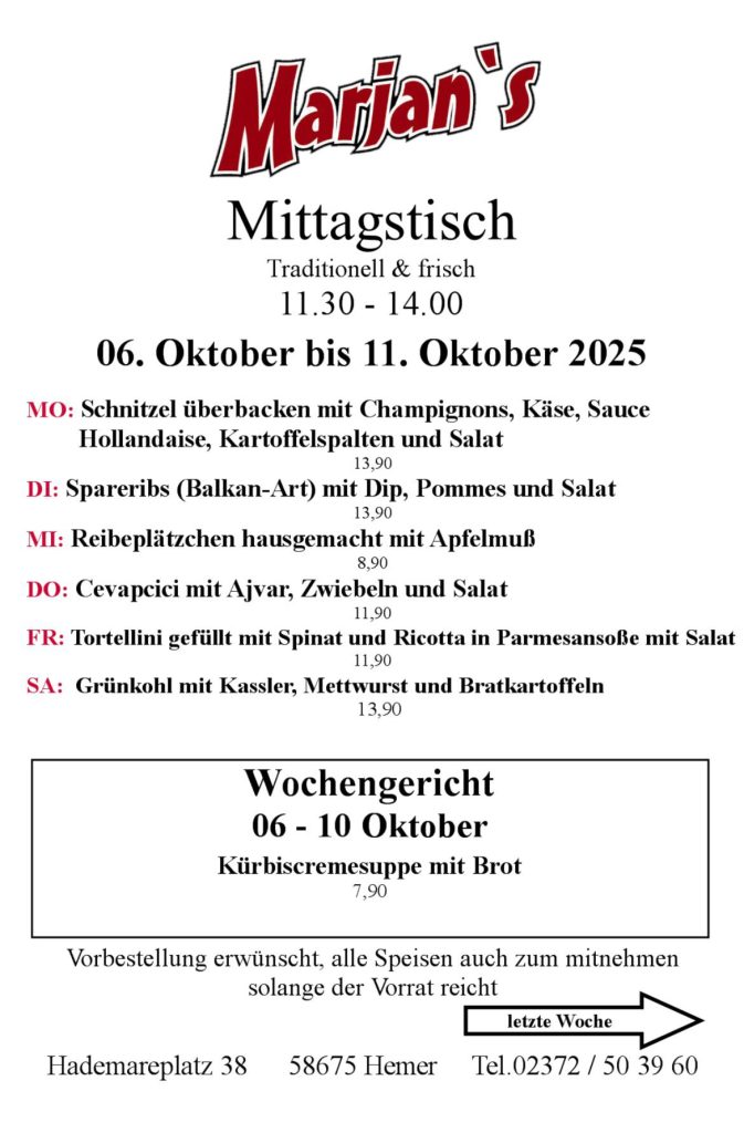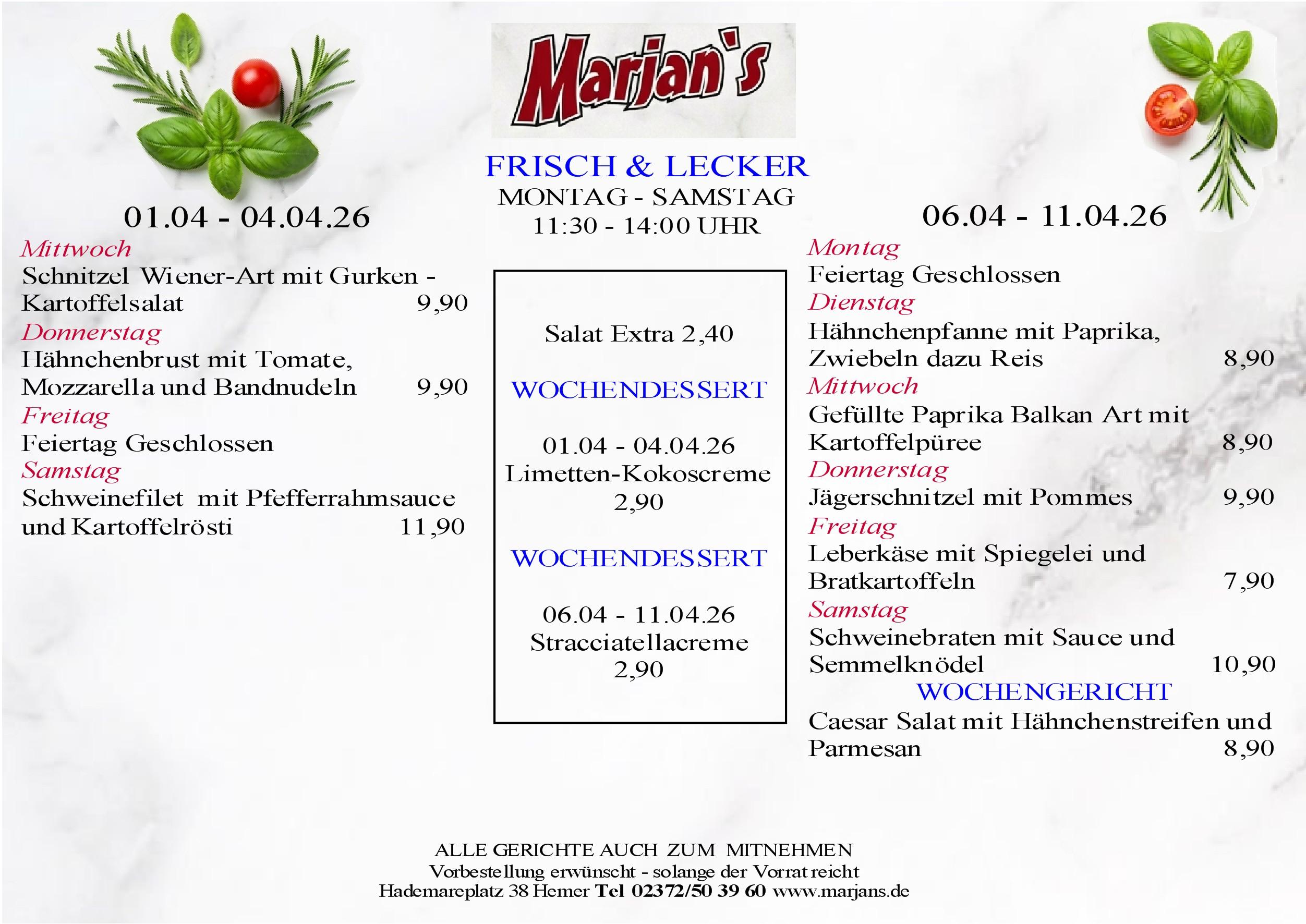 Unser Mittagstisch – Regional & Frisch – Montag bis Samstag von 11:30 bis 14:00 Uhr
