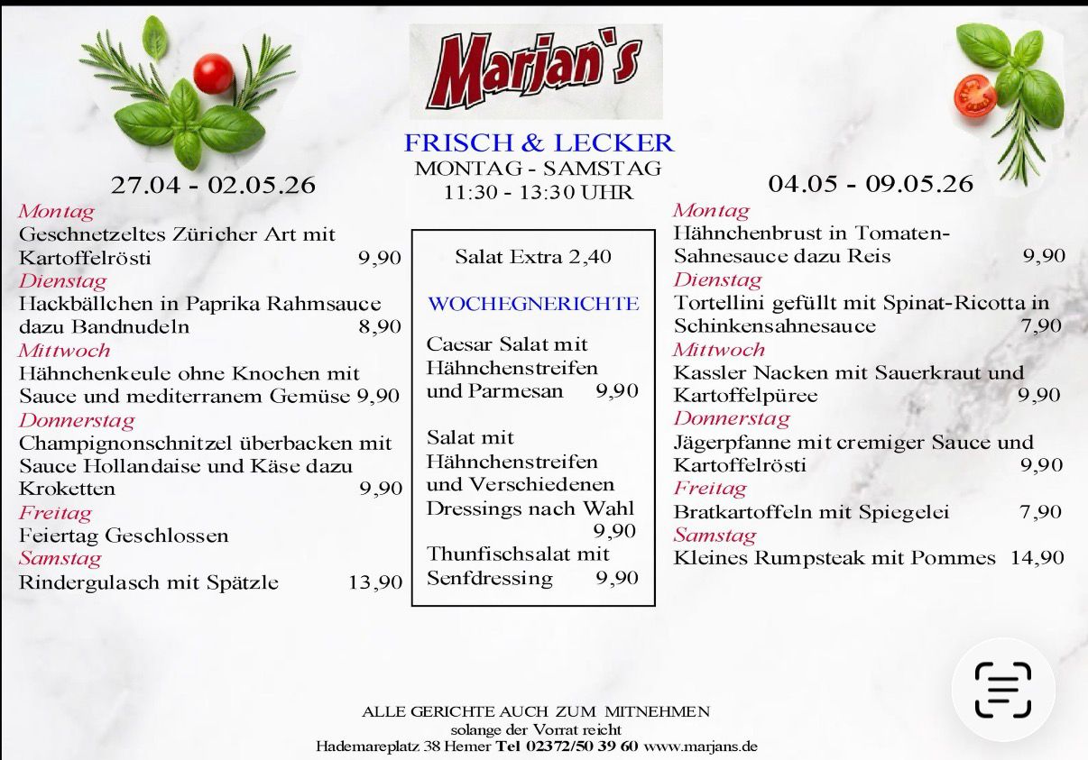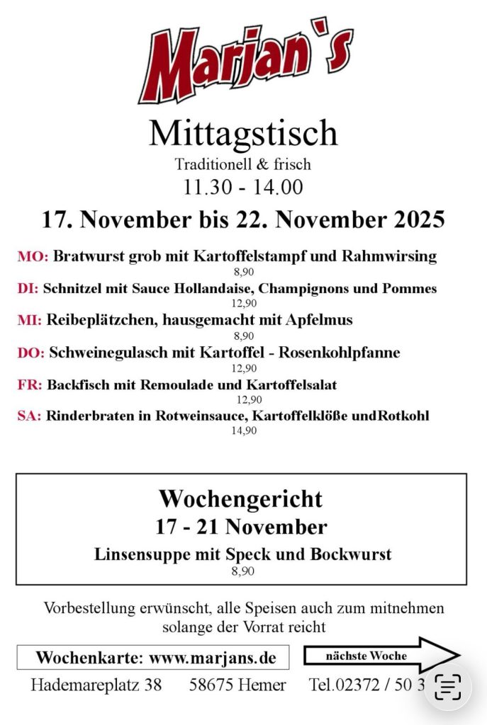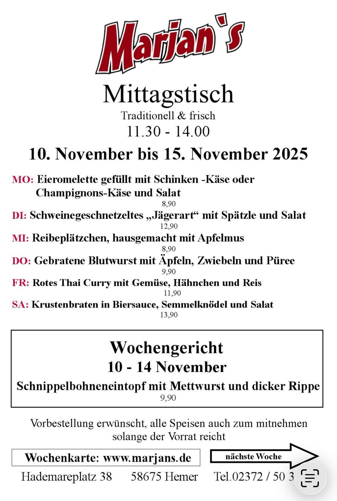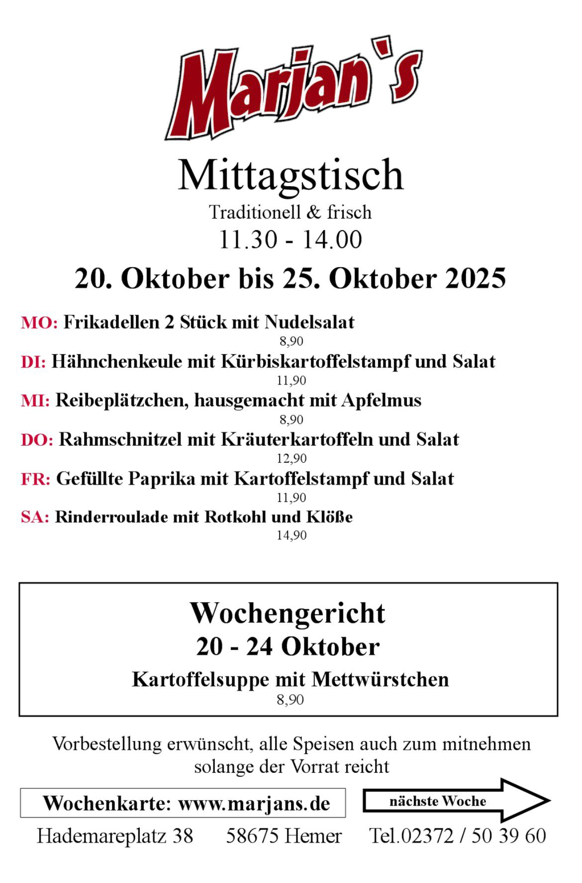 Unser Mittagstisch – Regional & Frisch – Montag bis Samstag von 11:30 bis 14:00 Uhr
